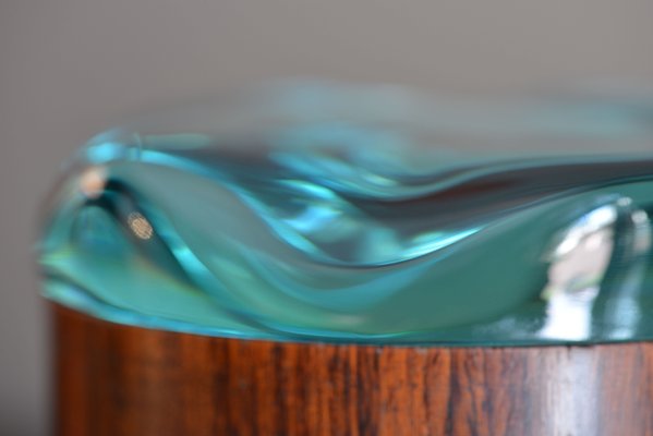 Runder Vintage Holz Behalter Mit Glas Deckel Von Pietro Chiesa Fur