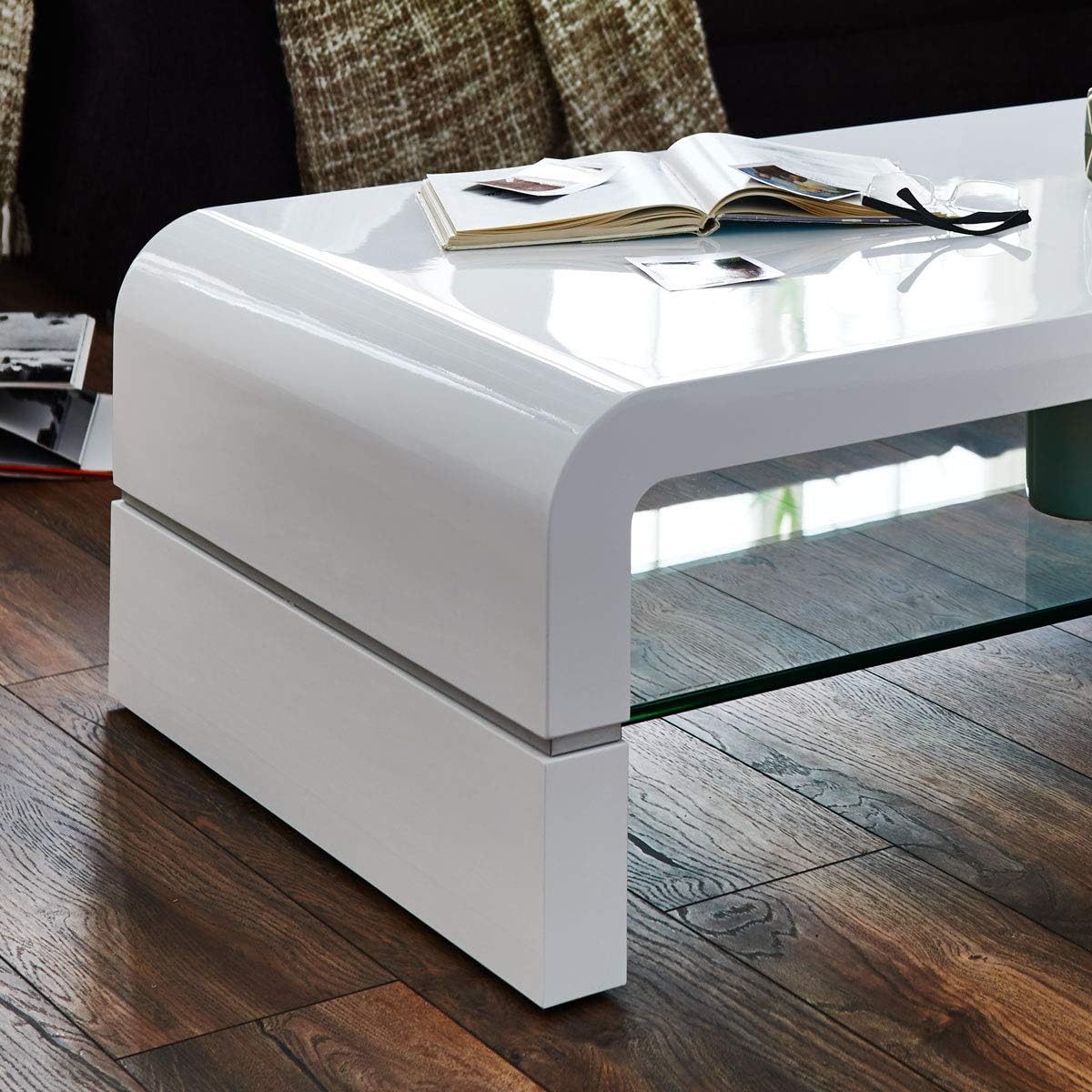 Moebella Couchtisch Weiss Hochglanz Mit Glasplatte Malaga 120x70cm
