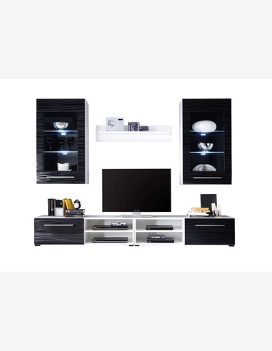 Wohnwand Colourart 4 Teilig Schwarz Weiss Mit Led Beleuchtung